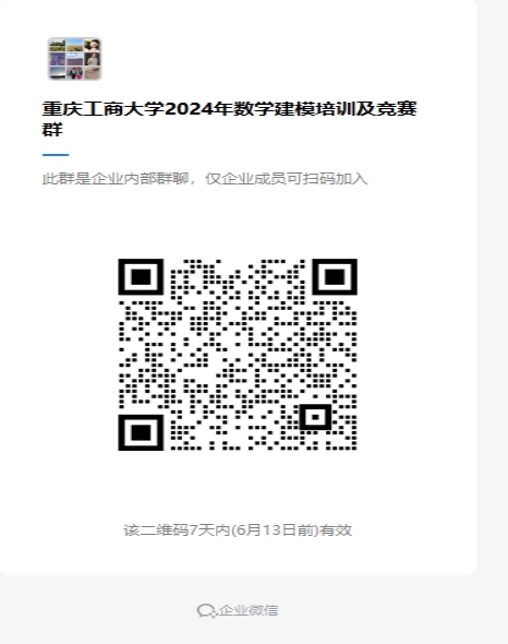 附:“重庆工商大学2024年数学建模培训及竞赛群”二维码