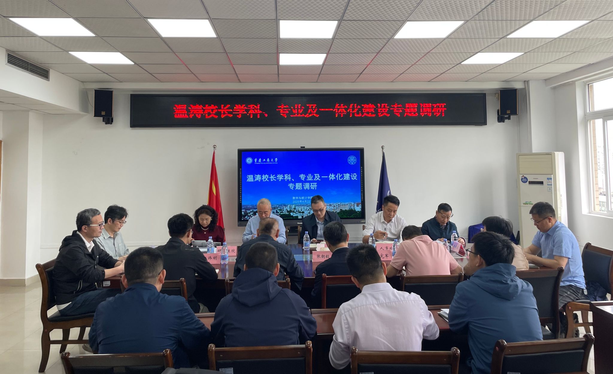 最后,温校长作总结讲话。他强调,数学学科是理工融合发展的基石,统计学是数字经济时代的关键支撑,学院要立足“新工科”“新文科”建设背景,进一步优化学科专业一体化发展路径。针对下一步工作,他提出四点建议:一是强化顶层设计,推动学科交叉融合。主动对接成渝地区双城经济圈国家战略,聚焦大数据、人工智能等新兴产业需求,推动学科链、人才链与产业链深度衔接,构建学科发展新格局。二是深化教育教学改革,创新人才培养模式。聚焦基础学科创新人才培养,加强课程改革,推动专业内涵式发展,强化实践教学和创新创业教育,全面提升人才培养质量。三是强化师资队伍建设,打造高水平科研团队。坚持引育结合,既加大对高层次人才、海外优才的引进力度,同时注重对现有教师的培养和发展,形成老中青相结合的科研梯队,提升学院整体科研实力。四是加强合作交流,提高开放办学水平。秉持开放包容理念,发挥学科专业特色,整合利用优势资源,拓展合作领域,深化合作层次,促进产学研用深度融合,凝聚协同发展合力。