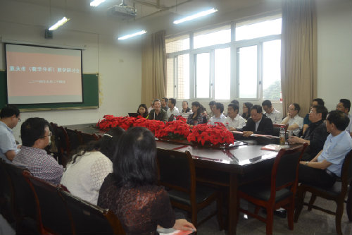 2014年5月24日上午,重庆市《数学分析》教学研讨会在ok138cn太阳集团,太阳集团tyc9728,44118太阳成城集团召开,此次会议由重庆工商大学、高等教育出版社、重庆市数学会联合主办,参加此次会议的有来自高等教育出版社、重庆工商大学、西南大学、重庆邮电大学、重庆理工大学、重庆师范大学等各个高校的领导以及专家。会议由ok138cn太阳集团,太阳集团tyc9728,44118太阳成城集团院长丁宣浩主持。