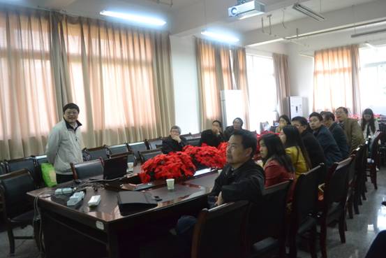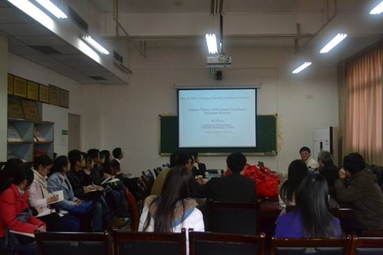 2014年11月25日下午两点半,四川大学张旭教授受我院邀请在慧智楼90510进行主题为“随机分布参数系统控制理论”学术报告会。陈义安院长、袁德美教授、赵文强副教授、杨宜华老师、胡雪梅副教授、詹毅副教授以及我院部分研究生参加了此次学术报告会。会议由院长丁宣浩教授主持。