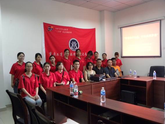 上午在黄桷渡社区的启动仪式由南坪街道团委李睿书记,社区领导甘代琼书记和我院党总支副书记易忠教授出席。南坪街道团委书记李睿代表街道领导对我院赴黄桷渡社区的志愿者们表示了真诚的欢迎,并强调今年南岸区将创建全国志愿者服务示范区,希望各位青年大学生志愿者们能将志愿服务这一高尚而富有正能量的精神传递开来,带动更多身边的人参与到志愿服务活动中去。