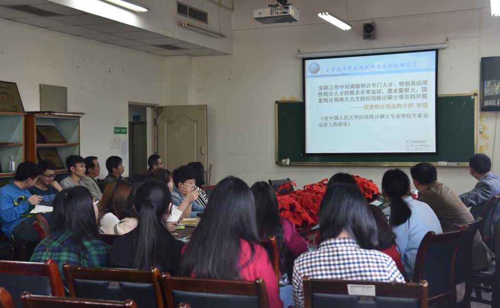 讲座开始,何传江教授把大数据比作金矿,这一形象生动的比喻引发大家的思考:什么是大数据?大数据有什么用?接着何教授分别从大数据的概念与认识、大数据技术与战略意义及贵州大学大数据发展规划三方面引导同学们走进大数据世界,最后总结出大数据的4V特点(Volume、Velocity、Variety、Value)和三大内涵(来源多样和类型多样的巨大数据量,新型的数据处理和分析技术,运用数据分析形成价值)。何教授风趣幽默的讲解,使同学们对大数据与应用统计有了更深刻的认识,对自己在研究生的后续学习阶段有了更清晰的目标。