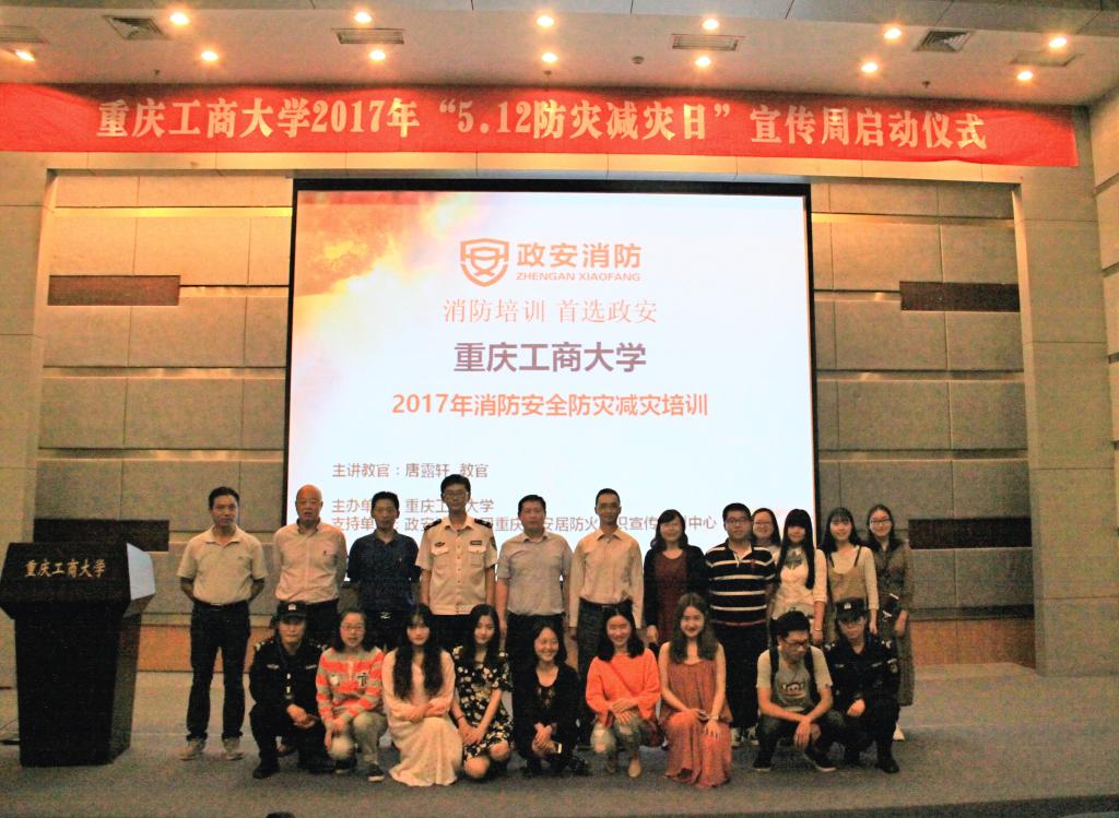 2017年5月12日下午14点,由重庆工商大学保卫处主办、ok138cn太阳集团承办的重庆工商大学2017年“5.12防灾减灾日”宣传周启动仪式在南岸校区博智楼7100圆满举行。莅临启动仪式的领导有重庆工商大学保卫处宫彪副处长,ok138cn太阳集团党总支喻永红书记和ok138cn太阳集团党总支程元元副书记,与会人员还有保卫处、后勤处、葆力物业、新大正物业员工,校园安保大队及ok138cn太阳集团部分师生。