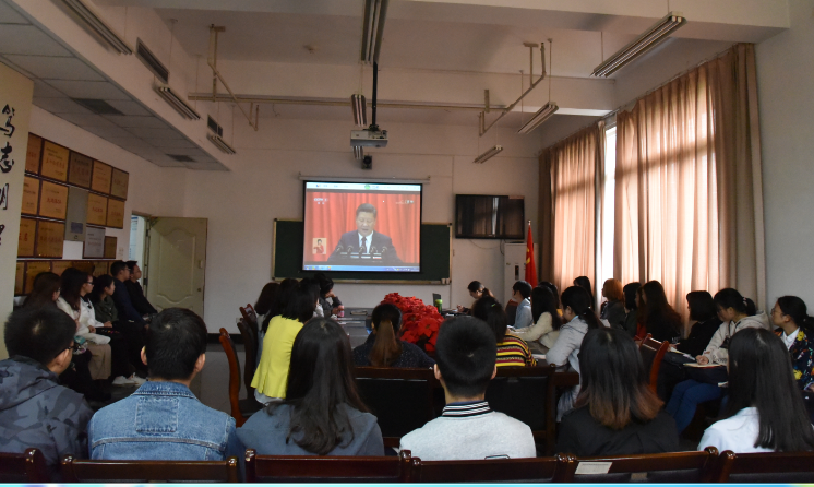 2017年10月18日上午九点,我院部分师生党员代表、学生干部、发展对象、入党积极分子等在慧智楼90510会议室,集中观看了中国共产党第十九次全国代表大会开幕会直播。
