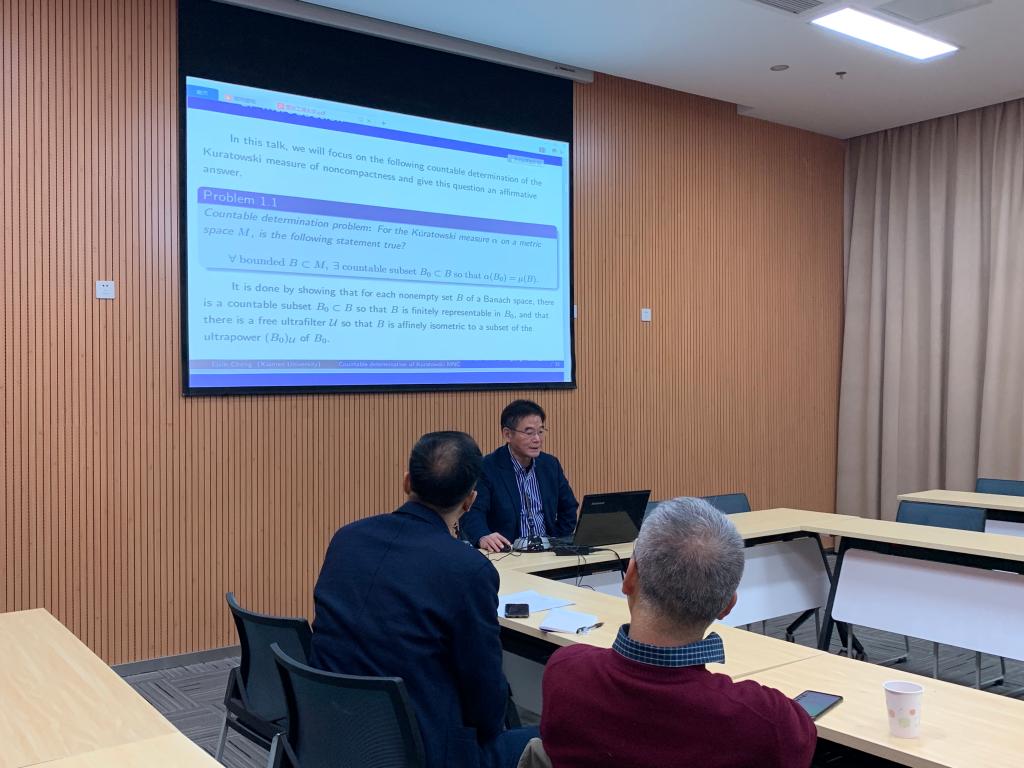 2019年11月30日下午4:50,厦门大学程立新教授应我院蔺友江教授邀请,在新图书馆会议中心二会议室做了题为《Countable determination of the Kuratoski measure of noncompactness》的学术报告,学院相关学科老师及学生参加了本次报告会。