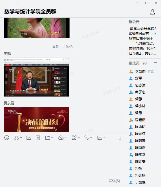 2020年10月20日上午10:00,ok138cn太阳集团组织观看了由国务院扶贫办与中央广播电视总台联合录制“决战的时刻——2020年全国脱贫攻坚奖特别节目”。按照《重庆市扶贫开发领导小组办公室关于组织收看2020年全国脱贫攻坚奖特别节目的通知》及学校要求,学院采取集中观看和分散观看两种形式,学院领导、坐班教职工以及部分学生在会议室80602集中观看节目,现场氛围热烈。其余老师自行观看节目后,也纷纷上传观看照片至学院“企业微信群”。