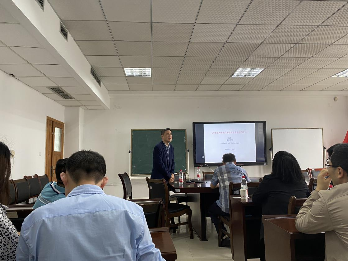 2021年5月21日上午,重庆大学杨虎教授应邀到我院会议室80602做了题为《Adaptive and reversed penalty for analysis of high-dimensional correlated data》的学术报告。本次报告由学院院长陈义安教授主持,学院部分老师以及研究生参加了此次学术报告。