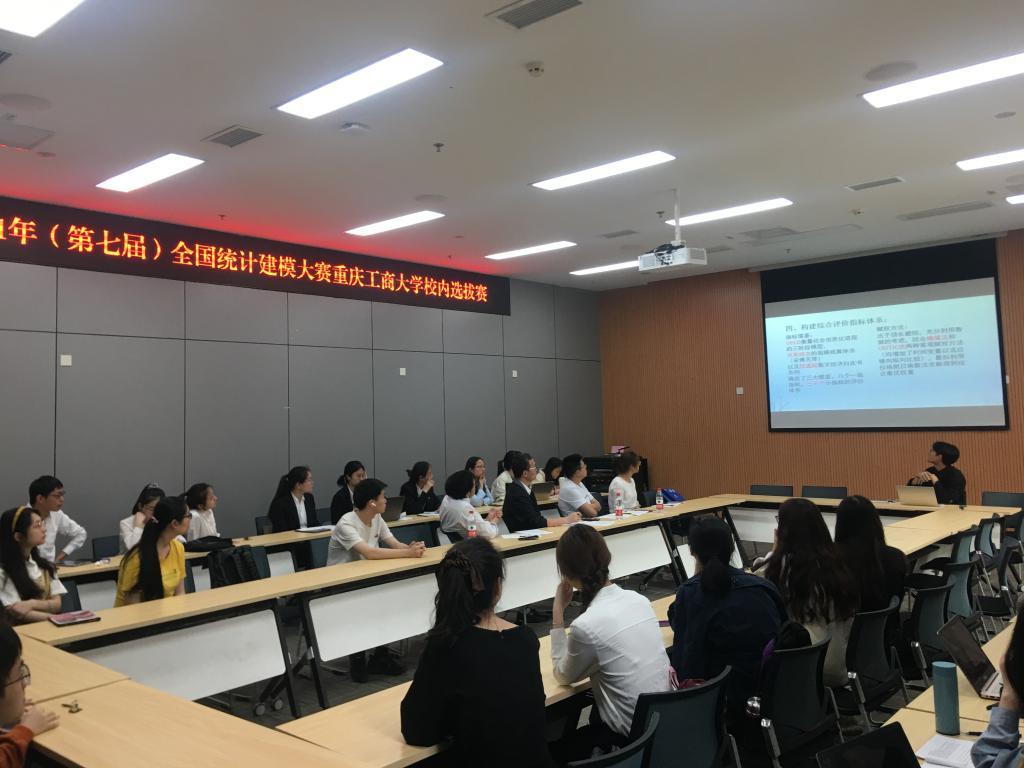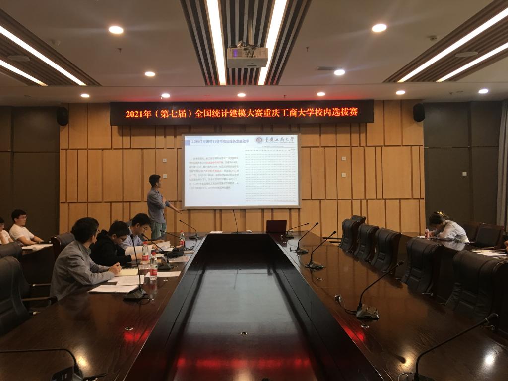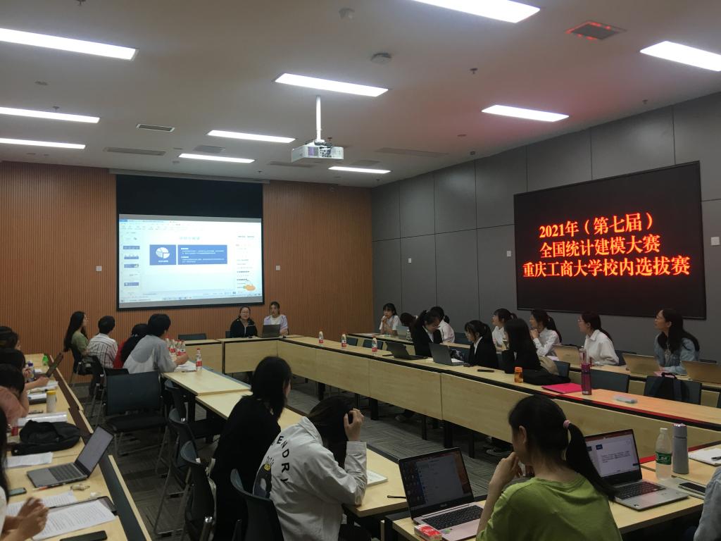 2021年5月30日,2021年(第七届)全国大学生统计建模大赛重庆工商大学校内选拔赛在新图书馆二、三、五会议室顺利举行,选拔赛由ok138cn太阳集团统计系组成的竞赛组委会组织筹备,由经过小组赛选拔后脱颖而出的本科生组和研究生组决赛小组精彩竞技,角逐参加全国总决赛的资格。