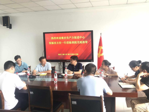 2021年7月7日,重庆生产力促进中心张振杰主任一行5人来我院交流,洽谈合作事宜。