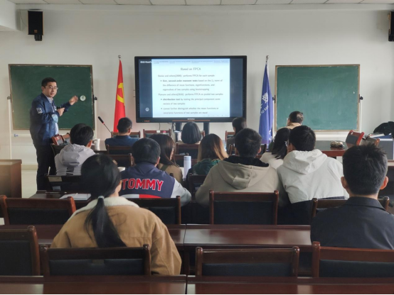 柏杨研究员回顾了现有函数型数据的两样本检验方法,指出了其不足并提出了新方法来应对同方差和异方差情况,发展了两样本和多样本的均值检验和方差检验,保证渐近检验功效损失最小,并使用模拟数据和真实生物医学数据展示了新方法的优点。报告后学院师生与柏杨副院长展开了学术讨论,特别是在上海财经大学统计学博士招生和待遇方面进行了深入交流,参会师生受益匪浅。