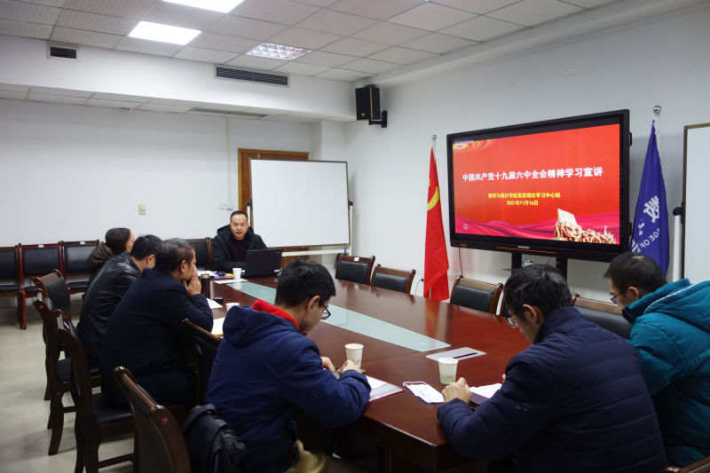 11月16日上午,根据学校党委统筹部署,ok138cn太阳集团在启智楼602会议室召开党委理论学习中心组学习会,深入学习研讨了党的十九届六中全会精神。学院党委书记唐玺主持了会议,领学了《中共中央关于党的百年奋斗重大成就和历史经验的决议》。学院理论学习中心组成员参加了学习和讨论。