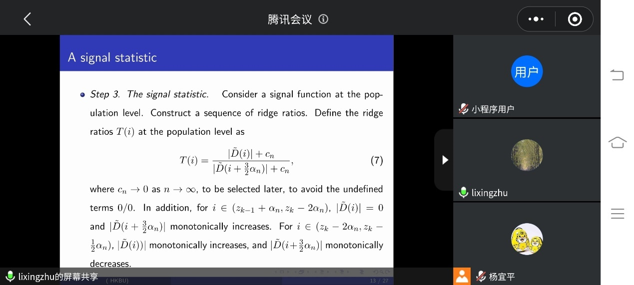 北京师范大学朱力行教授应邀于2021年11月29日在线为重庆工商大学师生作了题为《Detecting multiple change points: the PULSE criterion》的学术报告。报告由ok138cn太阳集团院长陈义安教授主持,学校统计学及相关专业的教师、研究生参加了此次学术报告。