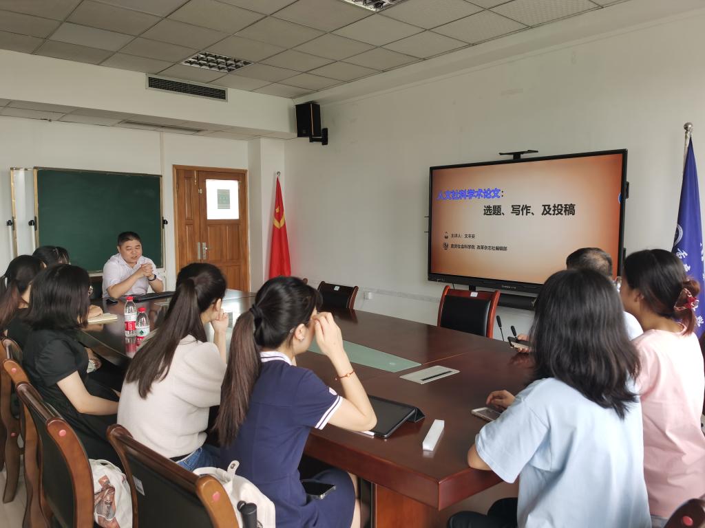 文丰安教授结合多年从事人文社科研究以及期刊编审工作的丰富经验,说到人文社科学术论文研究要把握好学术性、创造性、科学性、可读性等四大特点。论文选题要把握好有用性、公共性、经验性、传承性、创新性、现实性、前瞻性等七大原则。随后他介绍了学术论文撰写的合理规范性以及细节问题,比如撰写标题、内容摘要、关键词、引言、正文写作、研究方法、计量工具、主要结论等。最后就如何向国内国际核心期刊投稿给出了建议。