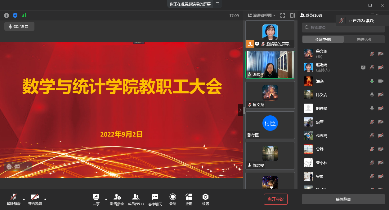 陈义安院长围绕2022年上学期工作总结、新学期工作思路、开学初期重点工作做了强调,并就学院人才引进、学生就业、校友工作、学科竞赛、专业建设、科学研究等作了部署,他提到要加强学院党建工作,以党建工作引领学院事业发展,促进学院各项工作高质量发展。