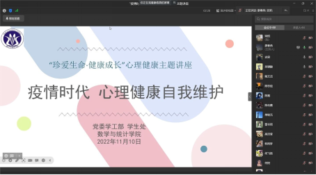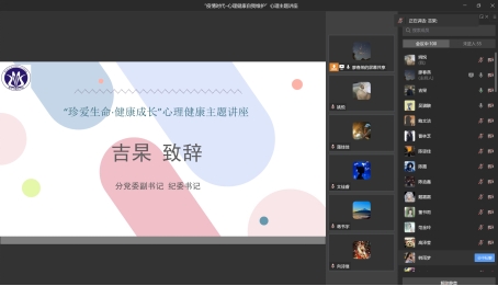 吴骕騻老师在随后的讲座中,紧紧围绕心理委员、寝室长等学生帮扶团队的工作职责、疫情下如何做好工作、心理自我调适方法等内容,通过案例分析、心理互动等多种方式进行了深入讲解。整个培训气氛热烈,同学们纷纷与老师进行交流互动,分享切身经历与身边发生的点滴故事,受益匪浅。
