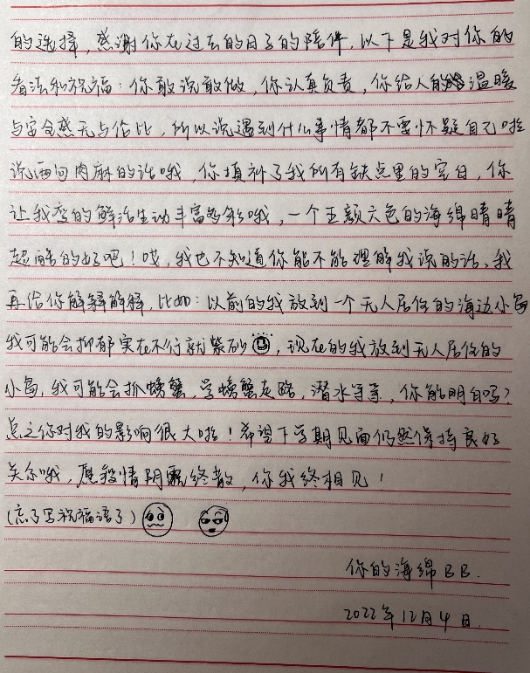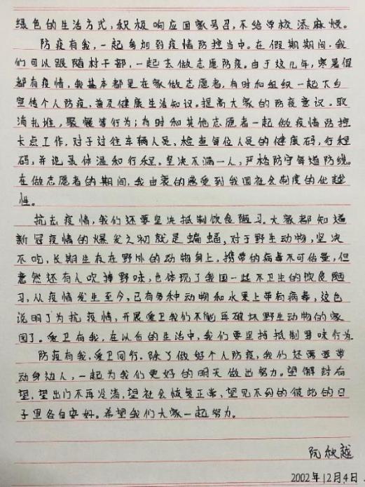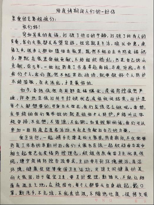 本次书信心理主题活动丰富了大家的课外校园生活,倡导同学们积极配合学校疫情防控要求,遵守校园封闭管理规定,主动承担起疫情防控职责,为疫情防控工作贡献青年智慧与力量。