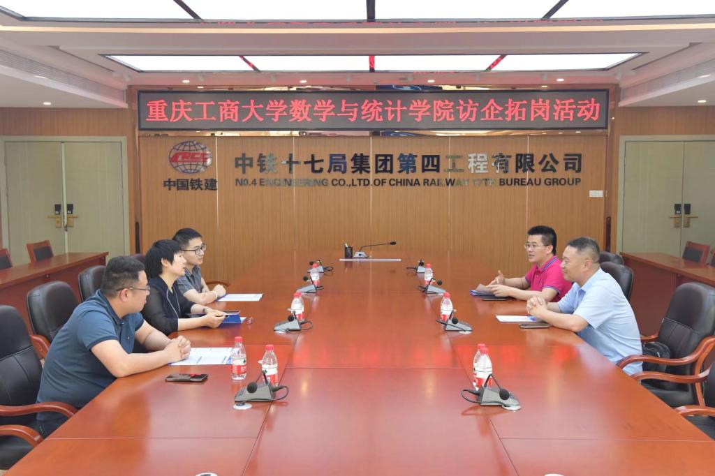 为认真落实学校就业工作“百日冲刺”要求,不断深化校企合作、拓展毕业生就业渠道,6月9日,学院大学数学教学部主任李霄民、副主任闻道君走访中铁十七局集团第四工程公司开展访企拓岗专项行动。中铁十七局集团第四工程公司党委书记赵卓峰进行了热情接待。