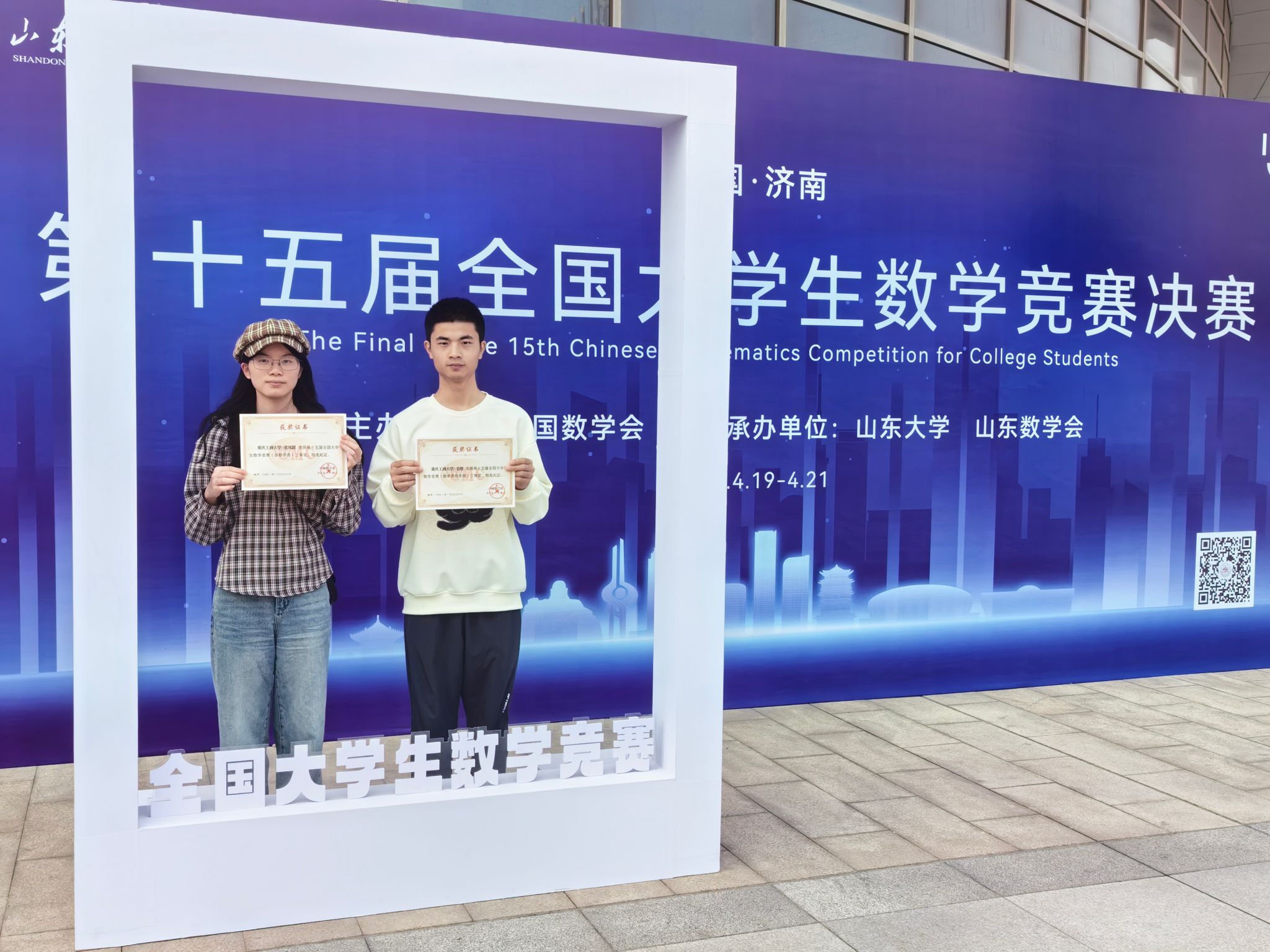 2024年4月19日至21日,第十五届全国大学生数学竞赛决赛在山东大学中心校区举行。本届竞赛自2023年5月启动,共设32个赛区,吸引了来自1108所高校的288355名学生报名参加初赛,1169名学生成功入围决赛。本次由ok138cn太阳集团带队我校2名学生参加决赛,经过激烈的竞争,张凤甜获得非数学类三等奖,毛煜获得数学类三等奖,重庆工商大学还荣获主办方颁发的优秀高校组织奖二等奖,为学校赢得了荣誉。值得一提的是,该比赛数学类奖励是我校近6年来首次获得。