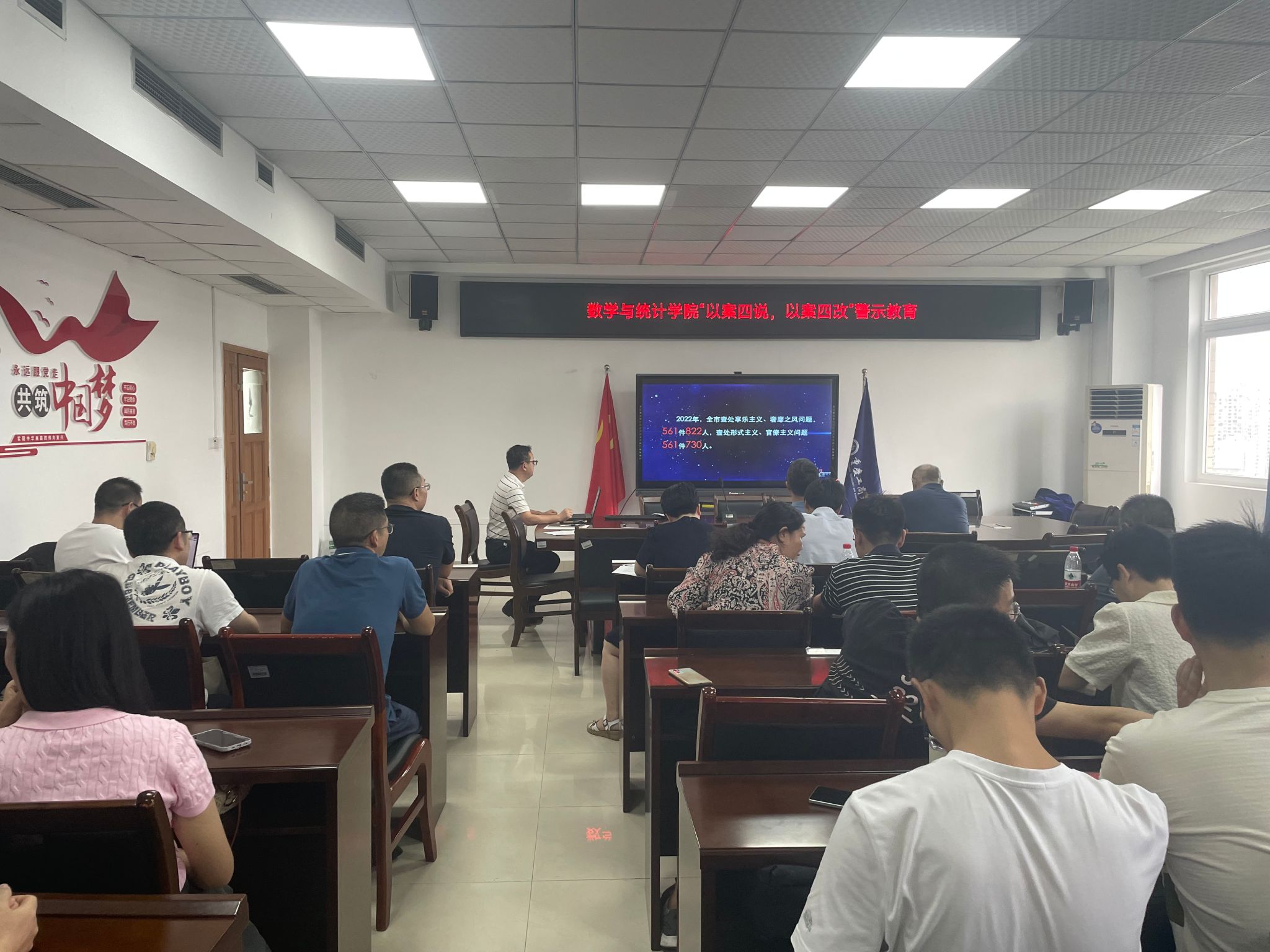 院长陈义安部署学院近期重点工作。他首先分享了学院在教育和科研领域取得的显著成就,对学院全体老师的不懈努力表示感谢,然后针对统计学硕士学位周期验收、统计学博士点建设、本科教育教学审核评估等重点工作进行了全面部署。他强调,学院将持续努力提升教育教学质量,拓宽招生渠道,吸引更多杰出学生;同时,他通报了国家级科研项目的立项情况,要求全体老师严格经费使用报销,要贯彻课堂思政,行政人员要做好管理与服务。