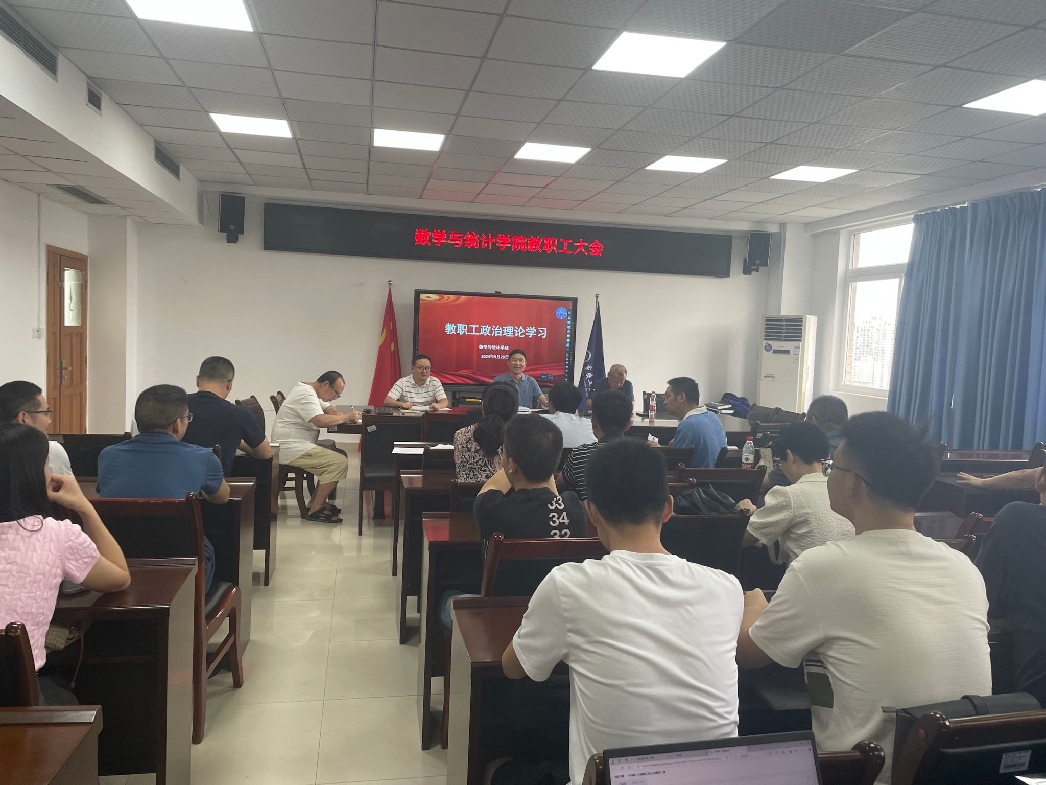 9月29日,ok138cn太阳集团在80602会议室召开全院教职工大会,举行以“学习贯彻党的二十届三中全会精神,凝精聚神谋学院全方位发展”为主题的政治理论学习会。会议分为两个阶段。