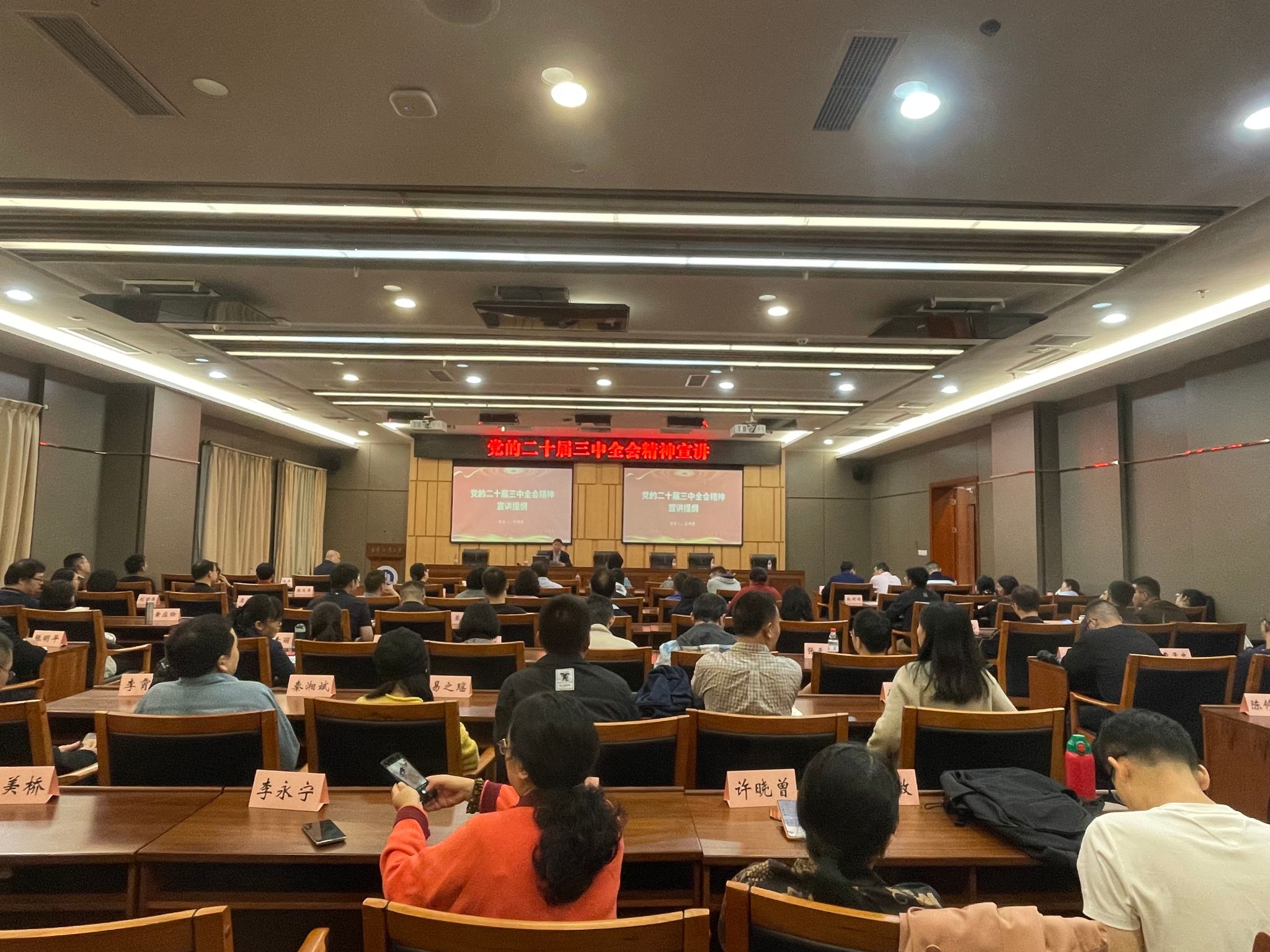 第二阶段会议由张朝毅书记宣讲“党的二十届三中全会精神”。解读其主旨、关键词、要点等,强调党的二十届三中全会是在以中国式现代化全面推进强国建设、民族复兴伟业的关键时期举行的一次十分重要的会议。深入学习宣传贯彻党的二十届三中全会精神,要抓住重点关键,结合习近平总书记在重庆的指示,突出努力打造崇尚学习、服务师生、开放包容、勇于创新、高效协同的新时代“红岩先锋”变革型党组织。