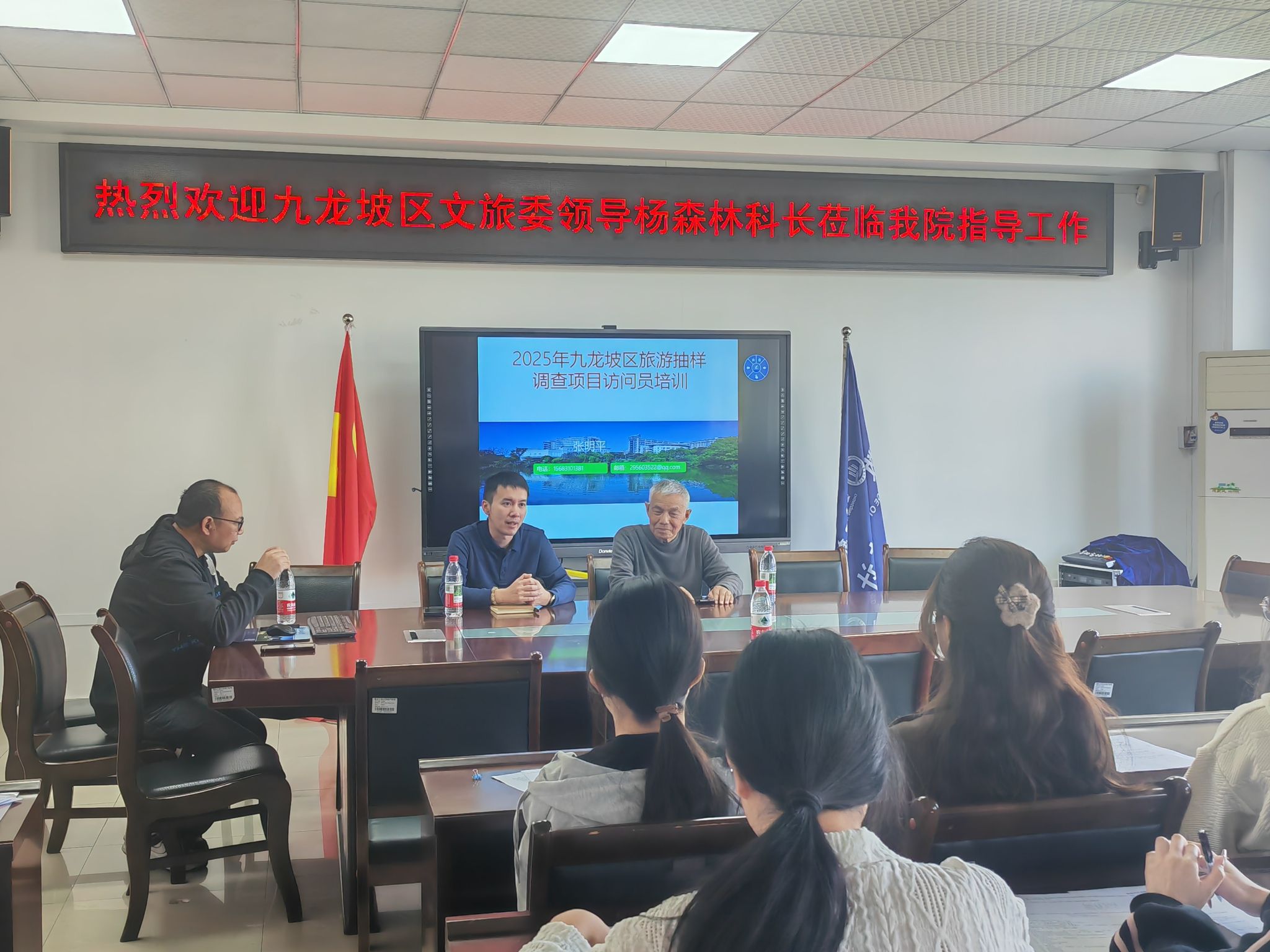2025年3月26日,重庆市九龙坡区文化和旅游发展委员会杨森林科长到ok138cn太阳集团,太阳集团tyc9728,44118太阳成城集团对 2025 年九龙坡区旅游调查访问员开展专项培训指导工作。此次培训旨在提升访问员的专业素养,为精准调研九龙坡区旅游市场、促进文旅产业高质量发展提供有力支撑。