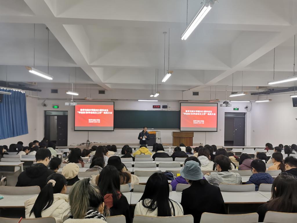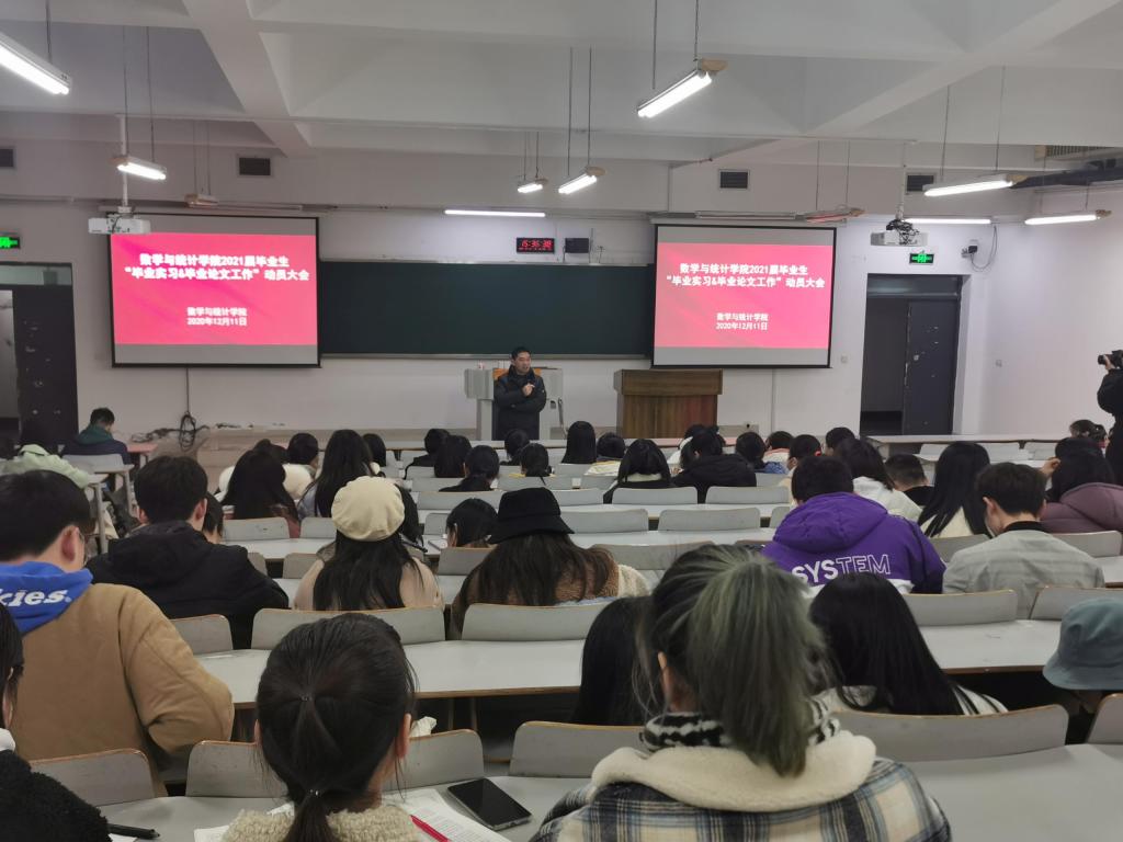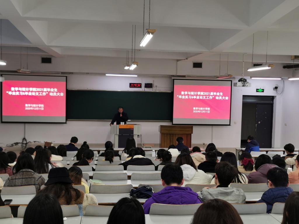最后,应用数学系主任陈修素老师和统计系副主任杨炜明分别就各自系的毕业实习和毕业论文具体工作进行了布置。他俩强调,毕业实习提交的实习报告、实习材料必须规范,毕业论文严禁造假,要端正态度、认真对待,材料真实可靠。对于选择考研的同学要合理安排时间,制定适合自己的学习计划,不要盲从。
