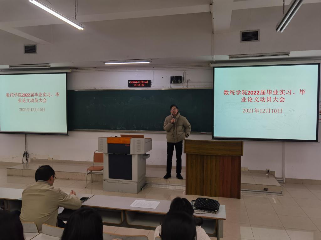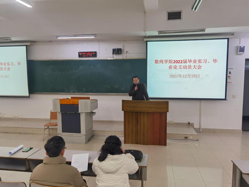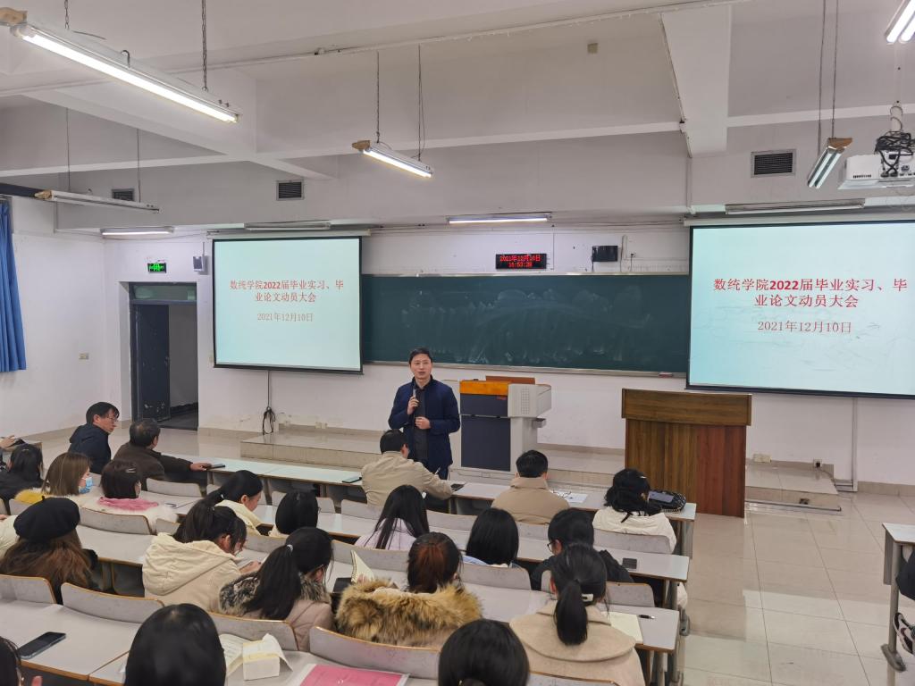 2021年12月10日,ok138cn太阳集团在博智楼7322教室组织召开了“2022届毕业实习和毕业论文工作”动员大会。2022届全体毕业生参加,学院领导、系主任以及毕业班辅导员出席会议并分别做工作安排。