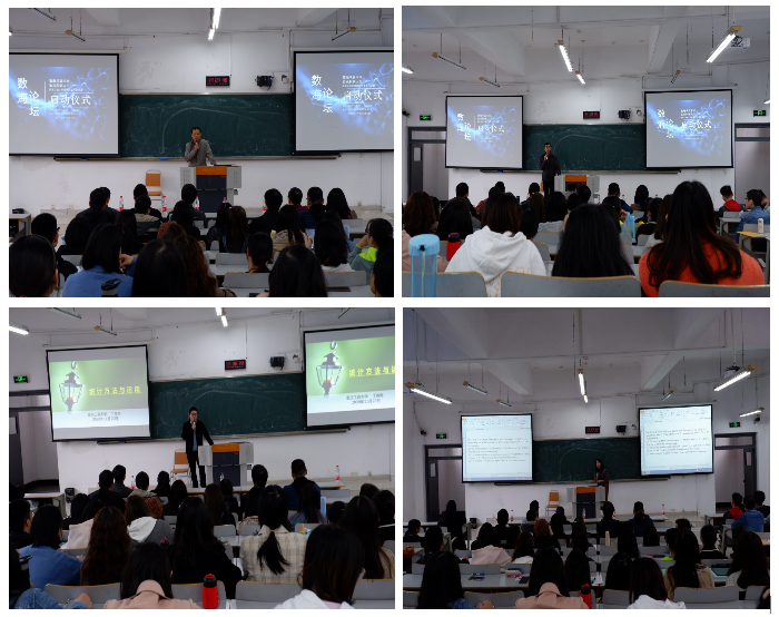 随后,“数海论坛”首场讲座正式开始。论坛特别邀请了丁黄艳博士和唐艳教授作为首场主讲人。丁黄艳博士主讲“统计方法与运用”,从理论和实践两方面讲解有关统计模型的应用以及统计学各个研究方向的区别,让在座的老师和研究生们对统计学有了深层次的理解,还让研究生们知道要怎么进行统计研究;唐艳教授主讲的“Self-adaptive step size algorithms for split variational inclusion problems”,通过迭代算法来解决分裂反问题,并列举了该理论在信号恢复中的应用,让在场人员对分裂反问题有了初步印象。两位主讲人与现场同学进行了良好的交流和互动,并回答了现场同学提出的问题。