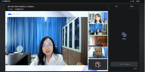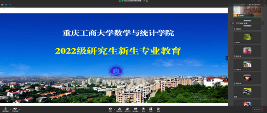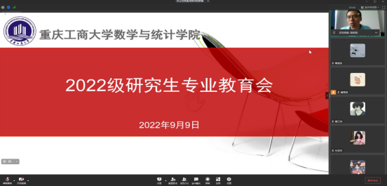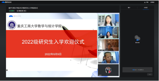 党委书记潘焱代表学院向2022级新同学致以热烈的欢迎和衷心的祝贺。她表示重庆工商大学数统学院将为同学们提供优质的课程与良好的生活环境,希望同学们充分利用数统学院的教育教学资源武装自己的头脑,努力锻炼身体来强健自己的体魄,同时遵守数统学院各项管理规定,遇到困难及时与学院老师沟通,度过充实而圆满的研究生生涯。