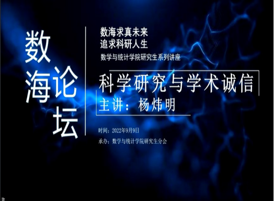 2022年9月9日下午,由ok138cn太阳集团研究生会承办、刘亚莉老师主持,面向学院全体研究生的“数海论坛”,邀请了学院杨炜明教授进行了题为《科学研究与学术诚信》的讲座。
