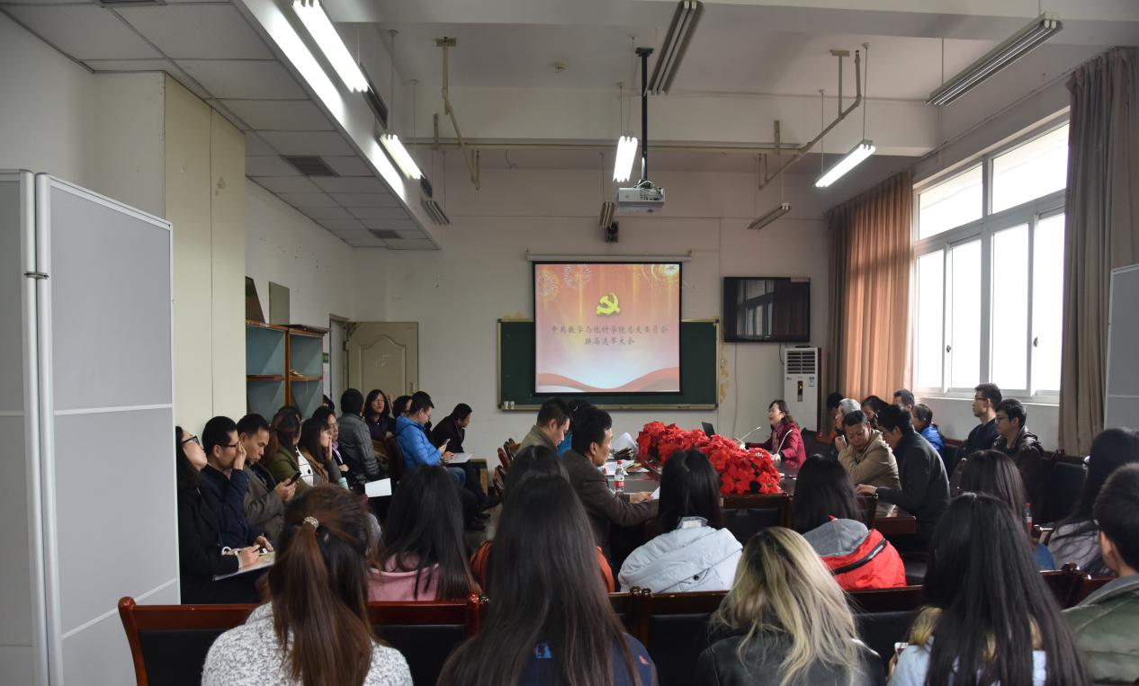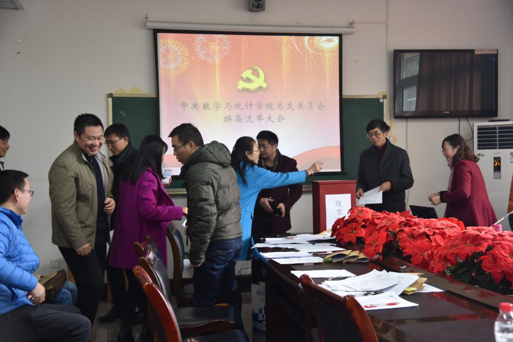 大会在庄严的国歌声中拉开帷幕。会议开始由党总支书记喻永红副教授做学院党总支工作总结报告。报告中喻书记讲到学院近年来的主要工作及成绩、存在主要问题、下一步发展思路三个方面的工作情况。与此同时,喻书记总结了近年来工作中的成绩和不足,为学院党总支今后工作的开展提出了建议。接着由陈义安副院长讲解换届选举注意事项,大会在充分发扬民主的基础上,由叶勇副院长监票,以无记名投票的方式选举产生数统学院第新一届党总支委员会。