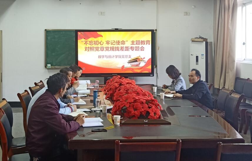 2019年10月30日下午,数统学院“不忘初心、牢记使命”主题教育对照党章党规找差距专题会在慧智楼90510会议室召开。此次会议由党总支书记喻永红主持,学校主题教育巡回指导第五组副组长米密、数统学院院长陈义安、党总支副书记程元元、副院长叶勇、副院长龙宪军参加。