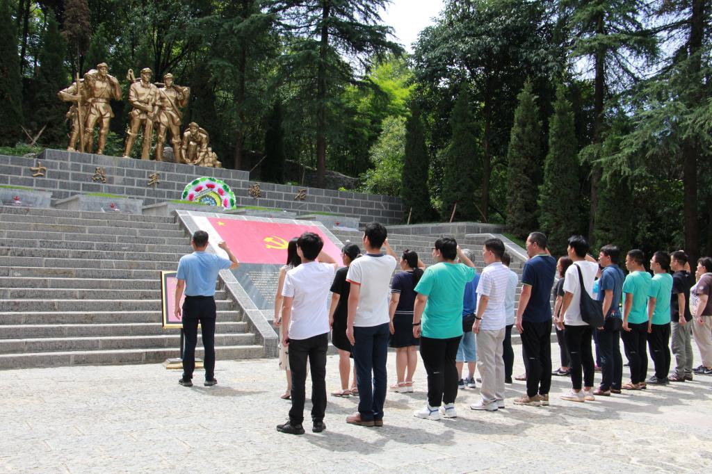 随后,全体党员面向党旗和烈士纪念碑,顶着烈日,由唐玺书记带领教职工党员,高举右拳重温入党誓词,神情庄重、声音铿锵。所有党员均表示,通过重温入党誓词,再一次体会到作为一名共产党员的责任感和使命感。最后全体教职工瞻仰了红军烈士墓和烈士陵园展览馆。