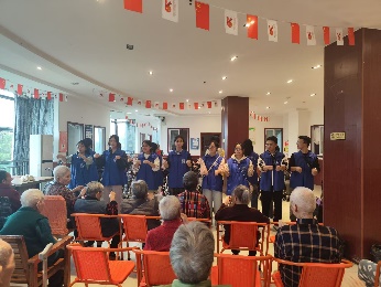 在德孝敬老院,志愿者们精心编排的演出和手工技艺展示,赢得了老人们的阵阵掌声。随着天气转凉,志愿者们还积极引导老人们进行手指操锻炼,帮助他们增强身体关节灵活度。此外,志愿者们还与老人们促膝谈心,共叙家常,以细致入微的行动传递温暖。