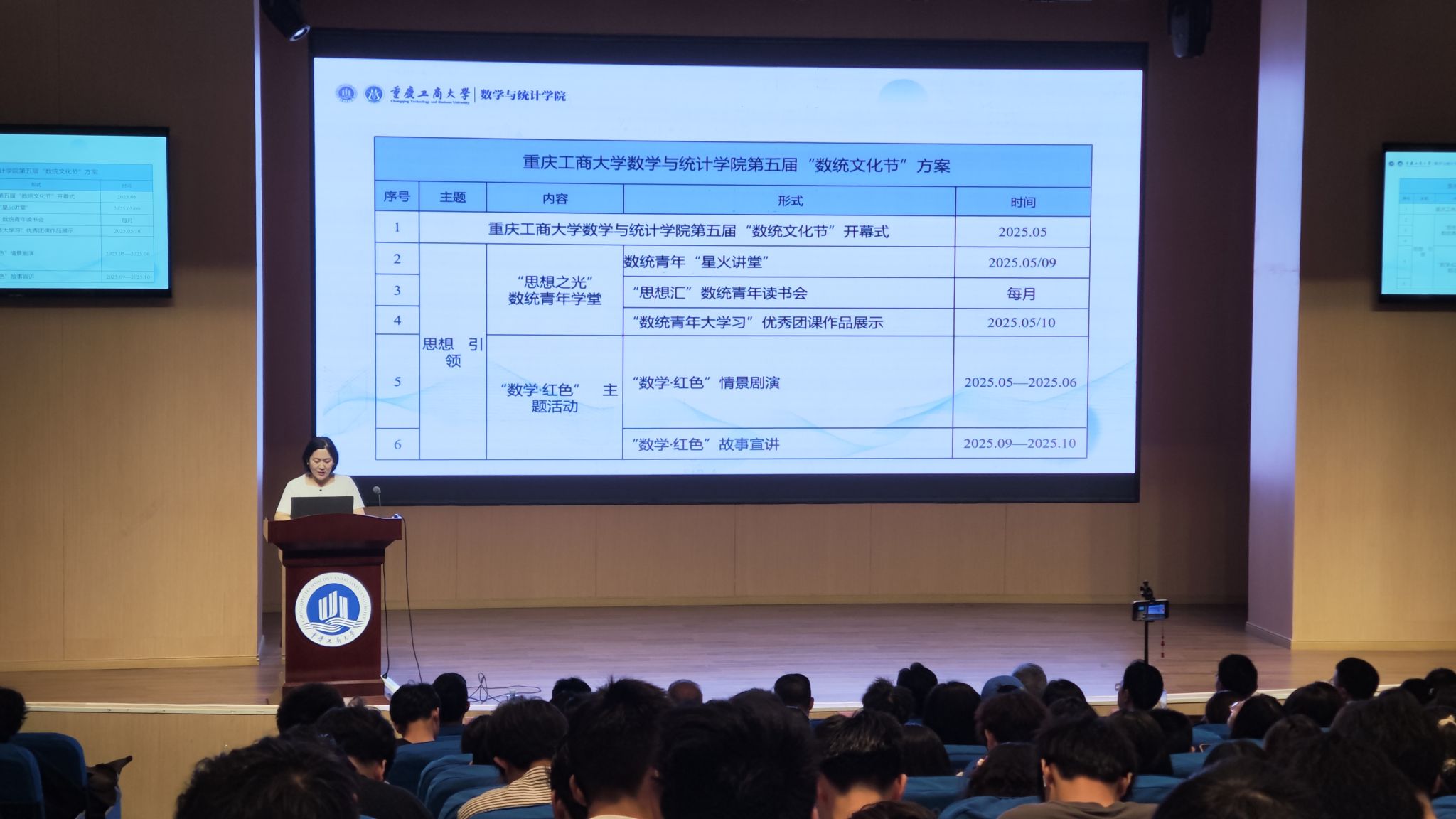 开幕式上,学院院长陈义安深入阐述了数学与统计学的学科优势。他向学生提出三点殷切希望:一者夯基砺学,广纳前沿精粹;二者问策于实,勇破现实困局;三者守正固本,力行致知报国。学院学工办主任、团委书记邢月军详细介绍了本届 “数统文化节” 活动方案。该文化节从2025年5月启动,至12月结束,将围绕“思想之光”数统青年学堂、“数学・红色”主题活动、“数说”成长等三个板块八大方面展开20余项学生成长与发展活动。