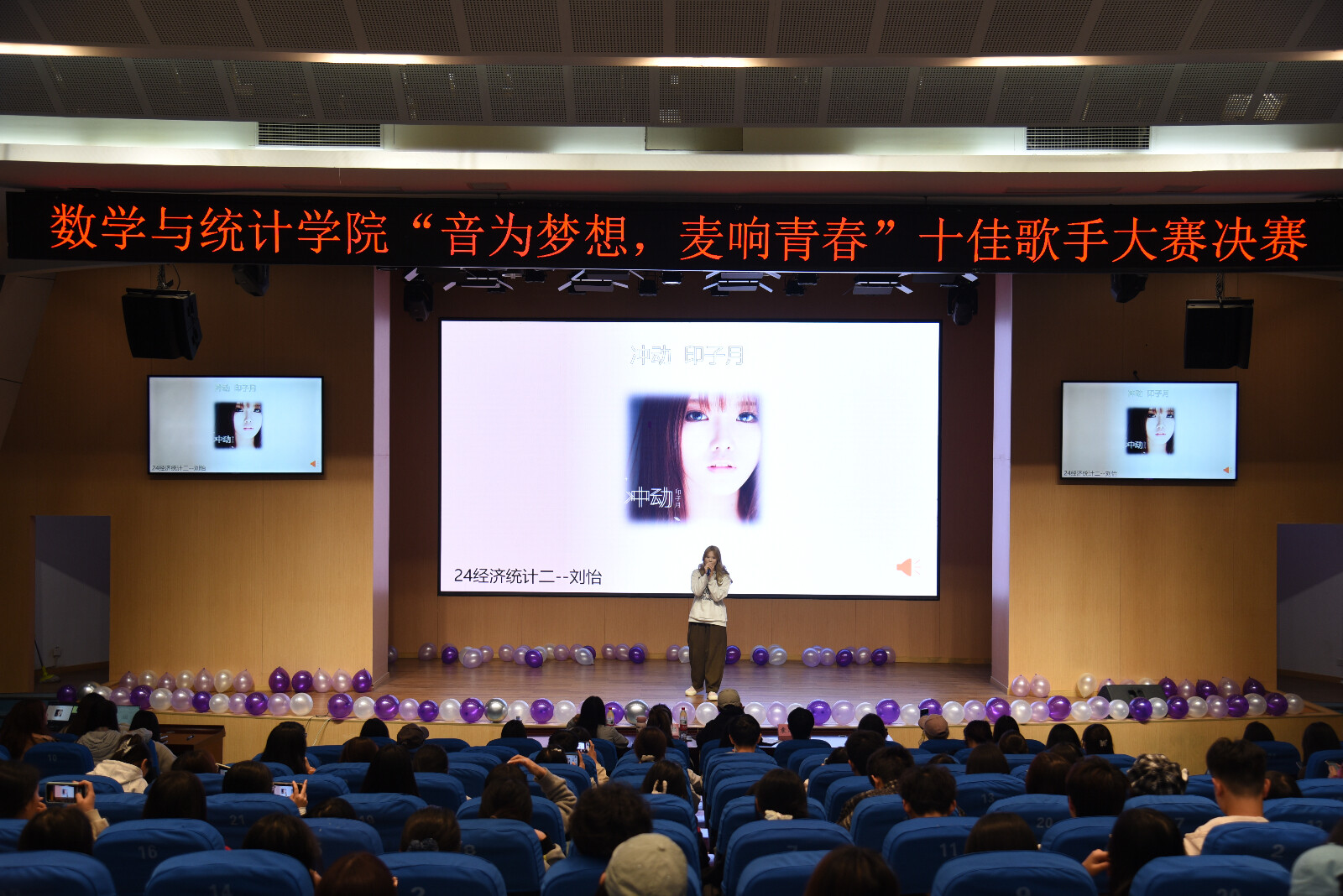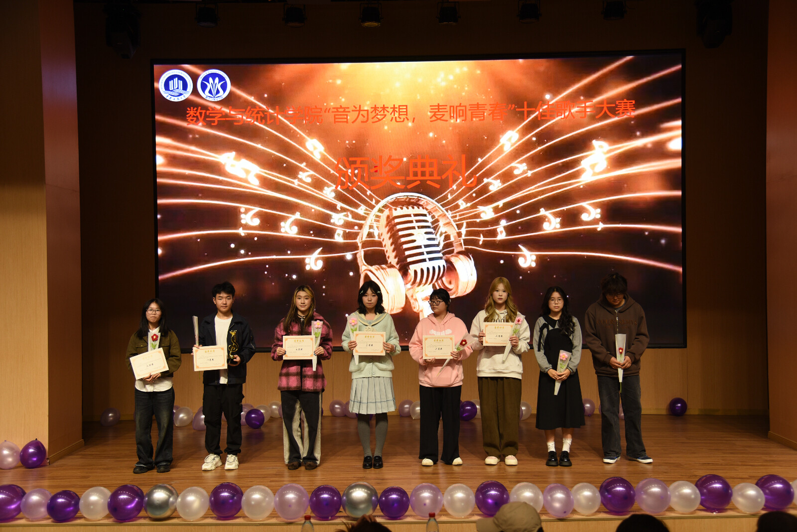 赛事设“个人金曲展示赛”“主题限定突围赛”两轮,成绩结合评委评分与观众投票,兼顾专业与民主。8位选手各展所长:个人赛中,抒情、流行等多风格作品轮番呈现,选手以唱功与情感打动观众;主题赛围绕 “逐光浅唱”“拾忆声潮”展开,演唱引发全场共鸣,现场氛围热烈。经近两小时角逐,25级数据科学一班邓清月获一等奖;24级数据科学一班刘雯心、24级经济统计二班刘怡获二等奖;25级统计二班黄禹程、24级数据计算李霜、25级经济统计二班陈欣然获三等奖,展现数统学子风采。
