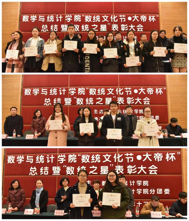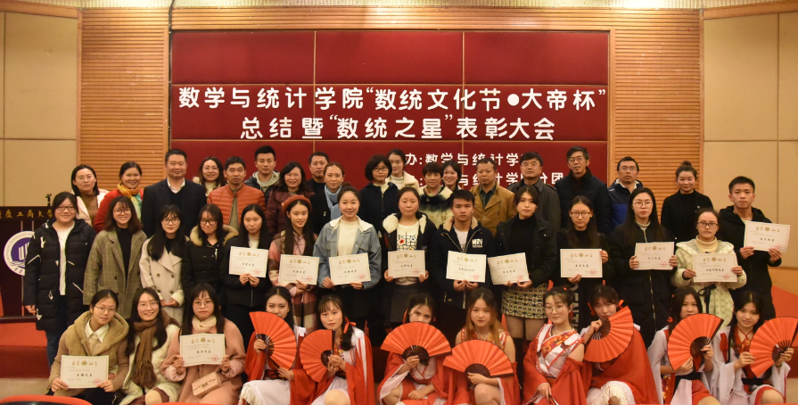 2018年12月6日ok138cn太阳集团“数统文化节•大帝杯”总结暨“数统之星”表彰大会在博智楼7200报告厅顺利举行。出席本次会议的嘉宾有重庆工商大学教务处副处长陈永丽、学生处副处长简福平、校团委副书记杨娟、数统学院党总支书记喻永红、院长陈义安、副书记程元元、副院长叶勇、院长助理龙宪军以及特别来宾重庆大帝教育集团人力资源总监陈韵潞女士。ok138cn太阳集团辅导员老师,学院分团委学生会成员, 2016级、2017级班级代表参加。