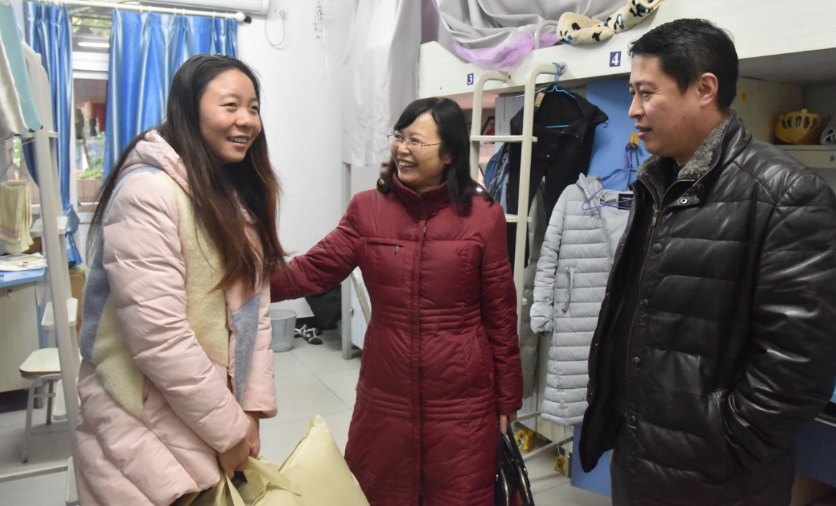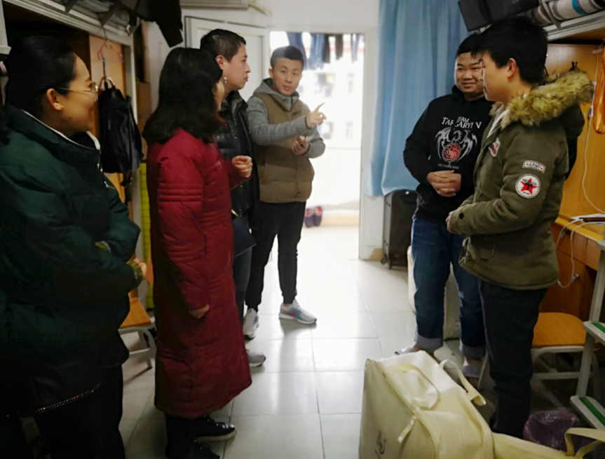 2018年12月29日,上午11:00,ok138cn太阳集团开展了走访学生宿舍冬季送温暖活动。ok138cn太阳集团党总支书记喻永红、党总支副书记程元元带领队吴卫、赵娟娟、余思云三名辅导员老师共同深入学生宿舍,先后来到了南岸校区南区12幢513宿舍,以及南区16幢102宿舍看望了部分家庭经济困难学生,代表学院表达对他们的关心和问候。