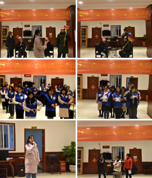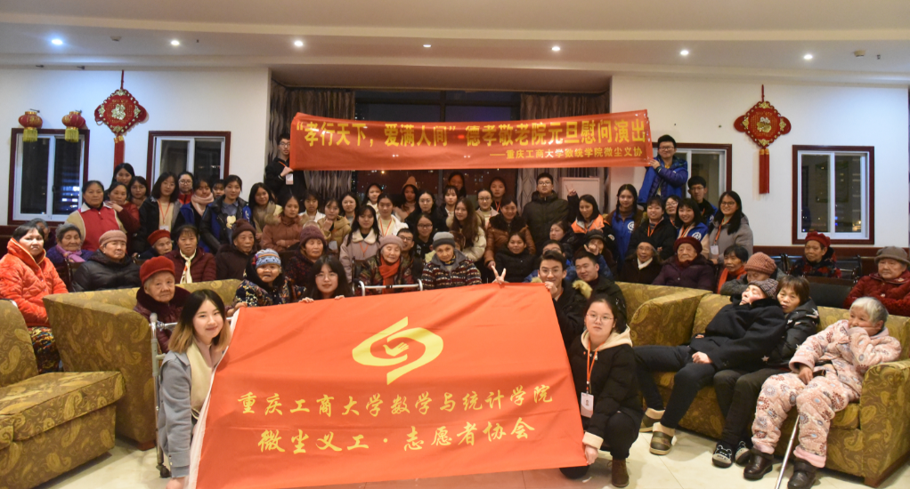 常言道,“百善孝为先,为弘扬“尊老、敬老、爱老”的优良传统,表达对敬老院老人们的关爱,2018年12月29日18:00,数统学院微尘义协志愿者们来到了江北区德孝敬老院,为老人们献上了主题为“孝行天下,爱满人间”的元旦慰问演出,陪老人度过了一个欢乐祥和的傍晚,让老人们在严寒的冬季感受到了温暖。