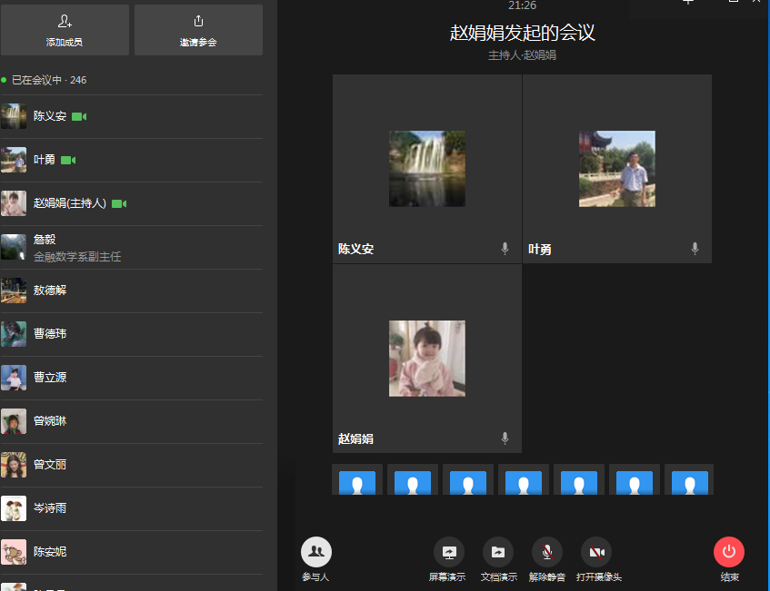 为大力推进我院2017级学生考研工作,帮助同学们树立考研目标,坚定考研信心,解决考研疑惑,学院于4月9日晚七点钟举行2017级考研动员线上推进会。学院党总支书记喻永红、院长陈义安、副院长叶勇、党总支副书记程元元、金融数学系副主任詹毅、统计系副主任杨炜明以及学院2017级200余名学生参加了此次会议。会议由2017级辅导员赵娟娟主持。