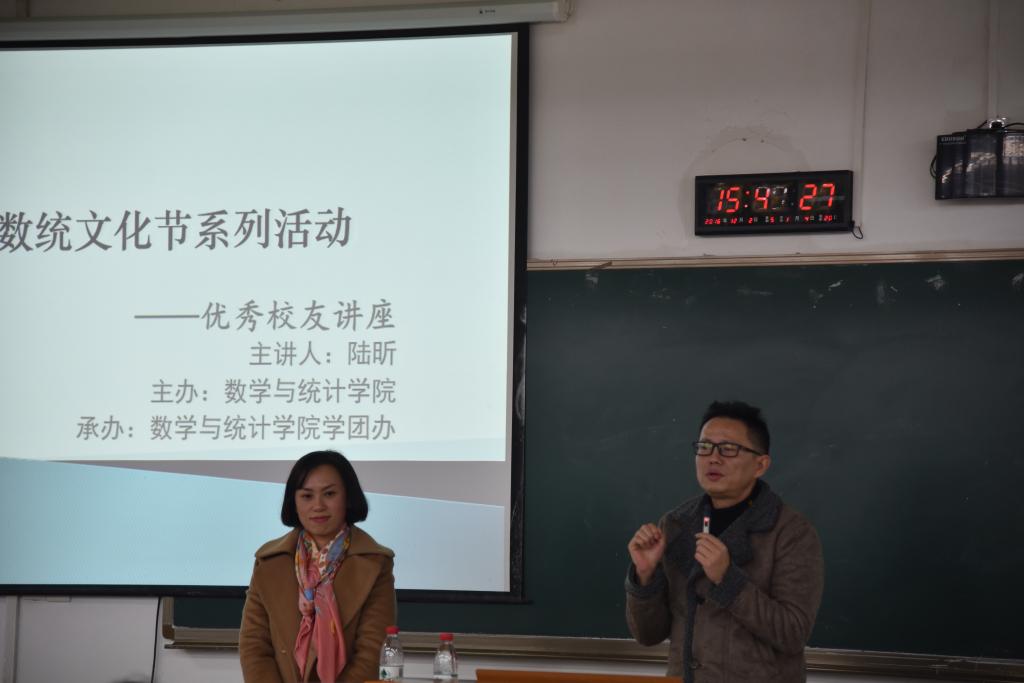 2016年12月2日下午2:20,由ok138cn太阳集团主办、ok138cn太阳集团团办承办的数统文化月系列活动“优秀校友讲座”在我校慧智楼90208圆满举行。此次讲座主讲人为现重庆市统计局审核处处长陆昕,由学院党总支副书记易忠教授主持。学院分团委书记吴骕騻老师、学生会全体成员及14、15、16级各班班委参加了此次讲座。