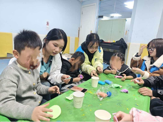 活动在轻松有趣的“杯子扣乒乓球”游戏中拉开序幕。志愿者巧妙移动纸杯,孩子们专注观察、积极互动,现场气氛迅速升温。随后进行的“橡皮泥捏捏看”环节更显温馨,志愿者们分组陪伴,耐心引导孩子们发挥想象力,共同捏制出小熊、小汽车等生动造型。每一件作品都凝结着交流的真诚与陪伴的喜悦,孩子与志愿者脸上的笑容更温暖了对方的心。整个活动过程组织有序,志愿者们始终充满耐心与爱心,并确保每位小朋友都能参与其中,感受关怀与快乐。