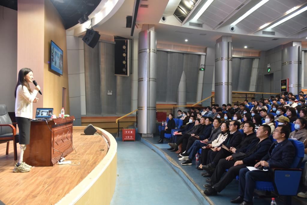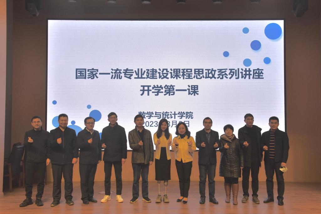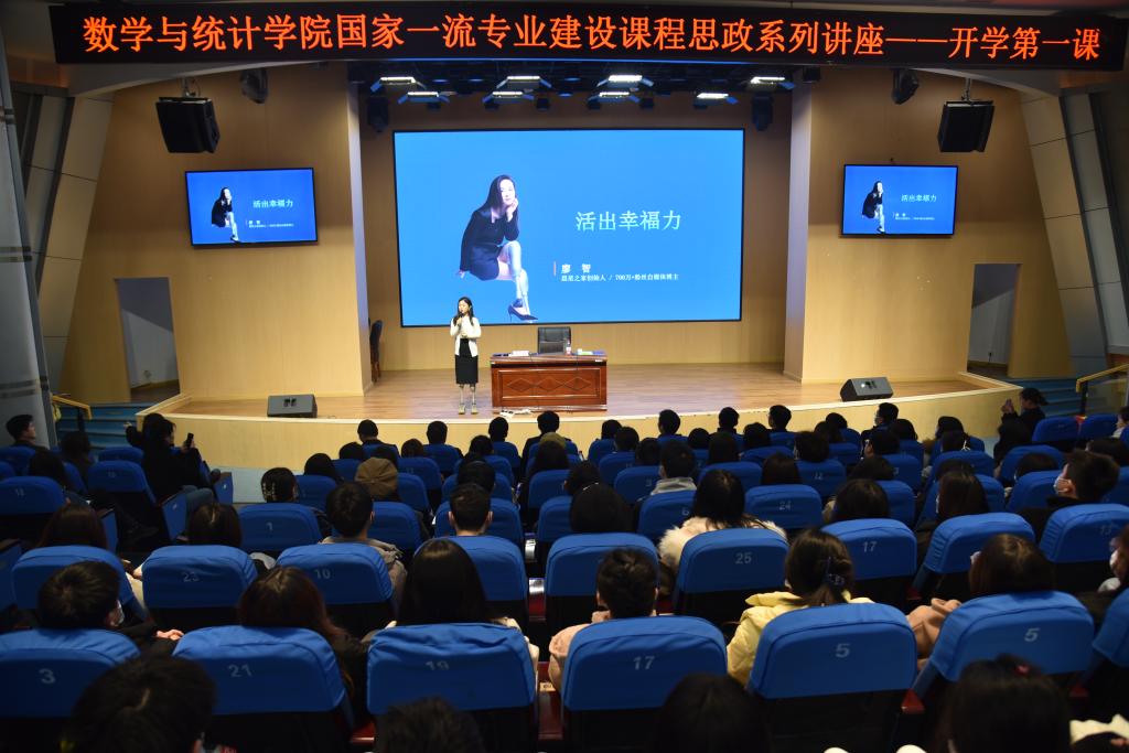 为了落实立德树人根本任务,做好国家一流专业建设课程思政工作,帮助同学们开好头、起好步,以饱满的精神面貌开启新学期、奋进新征程,在党委宣传部、党委学工部、教务处和校团委的指导下,在研究生院的支持下,ok138cn太阳集团于3月3日下午,在明智楼110100报告厅举办了国家一流专业建设课程思政系列讲座——开学第一课。特别邀请到了央视《开学第一课》《开讲啦》等节目演讲嘉宾廖智女士为师生做专题报告。党委学工部副部长张朝毅,数统学院党政领导和师生代表400余人聆听了这堂课,讲座由学院副院长龙宪军主持。