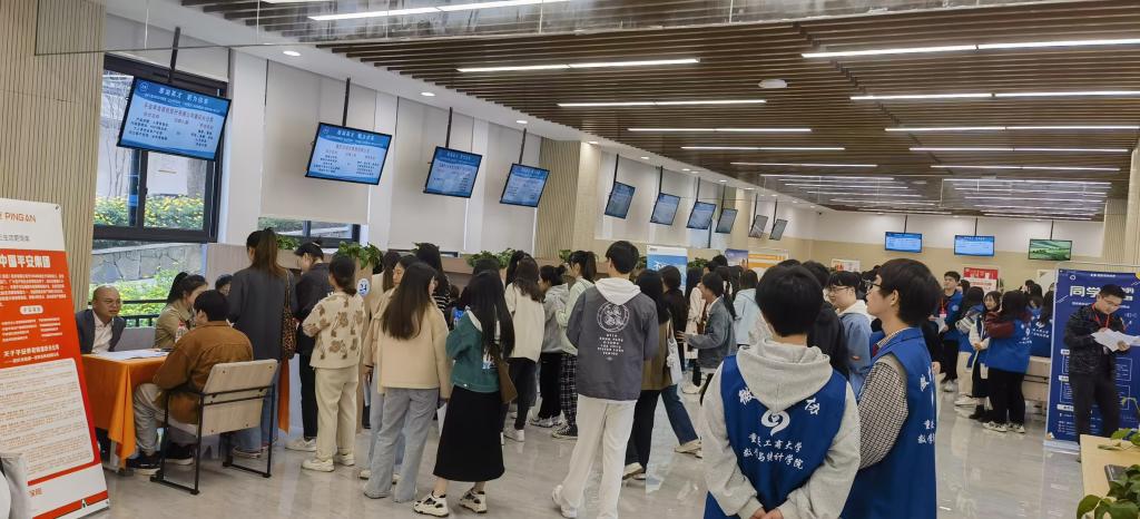 2023年4月7日下午,重庆工商大学ok138cn太阳集团“翠湖英才,职为你来”2023年春季就业攻坚线下招聘会在重庆工商大学南岸校区学生事务中心一楼举行。