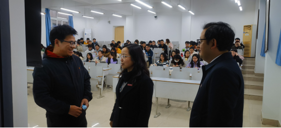新学期伊始,为进一步帮助学生培养良好学习习惯,做好学院学风建设工作,ok138cn太阳集团党委书记潘焱,党委副书记吉杲、学工办主任吴卫和全体辅导员于3月6日上午深入课堂,了解我院学生上课学习状态,开展新学期查课活动。