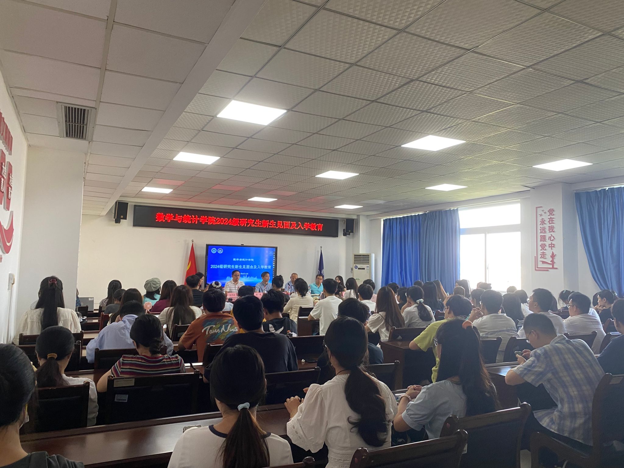 最后,研究生分学科进入分会场接受专业教育。龙宪军与刘亚莉细致阐述了数学、统计学及应用统计的培养体系,全面解答了新生关于毕业要求、深造路径及研究方向的疑惑。两位老师以学生视角出发,勉励新生将学习融入日常,不断自我提升,同时深思个人价值观与未来愿景,精准定位,把握人生每个重要时刻。