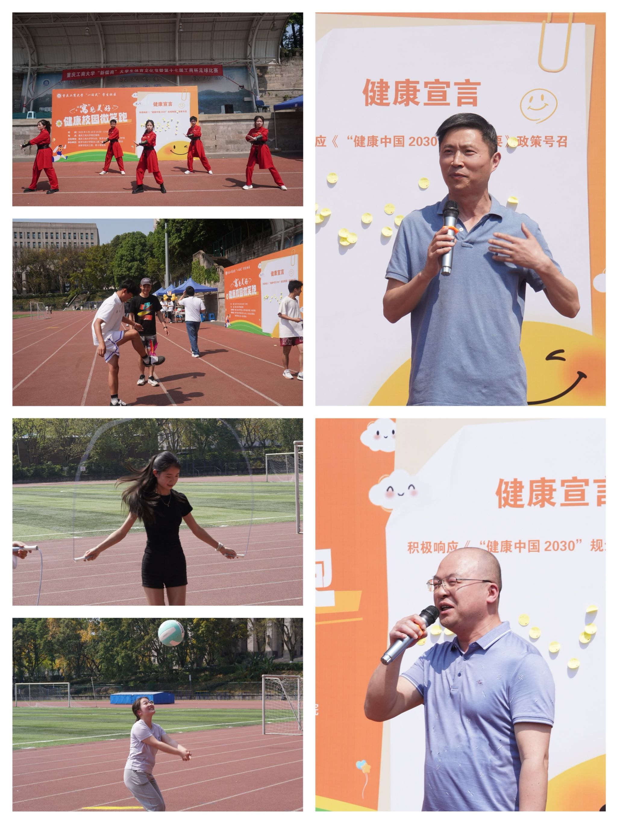 本次活动设置了“健康宣言”“微笑跑”“趣味运动”三大板块。活动现场,数百名学子热情参与,“跃动跳绳”“飞扬气排”等项目将体育竞技与趣味游戏相结合,让学生们在运动中挥洒汗水,在欢笑中收获健康。