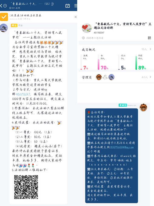 为大力宣传国家资助政策及成效,深入贯彻落实习近平总书记“全员育人、全程育人、全方位育人”要求,11月28日,ok138cn太阳集团举办了“青春献礼二十大 资助育人筑梦行”线上征文活动,积极教育引导广大青年学生永远跟党走,展现新一代大学生的青春奋斗风采,着力培养学生自立自强、知恩感恩、勇于担当的良好品质。