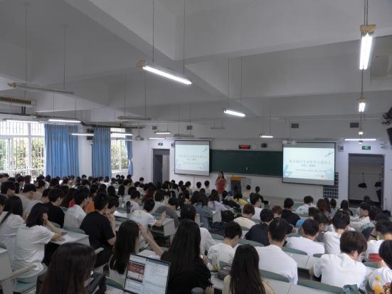 陈义安院长首先分析了国内经济形势和就业市场,指出当前社会发展空间有限的现实情况,强调了考研的重要性,同时梳理了国内考研与海外考研两条途经。陈院长提醒同学们在选择目标院校和专业时要找准自身定位,不要过分追求;建议同学们把握好数学和英语两大科目,对大家的复习计划提出了宝贵的意见。此外,陈院长还提出了修双学位的选择建议,为学生增长知识、全面发展指明了途经。最后,陈院长深情寄语,祝愿每一位同学学业有成,前程似锦。